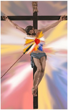 – i colori che fanno da sfondo al cuore e al crocifisso, indicano l’espandersi dell’amore di Dio;